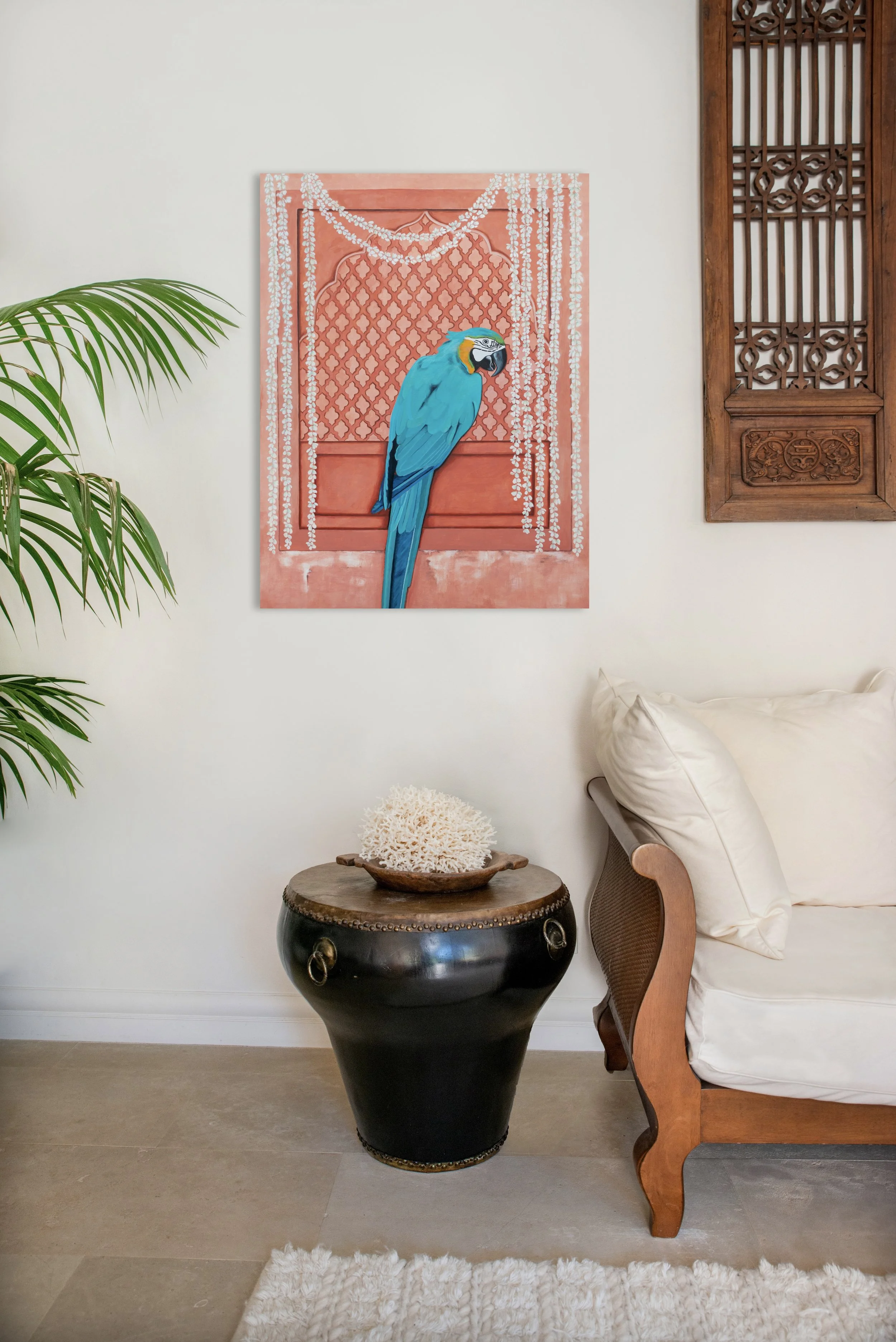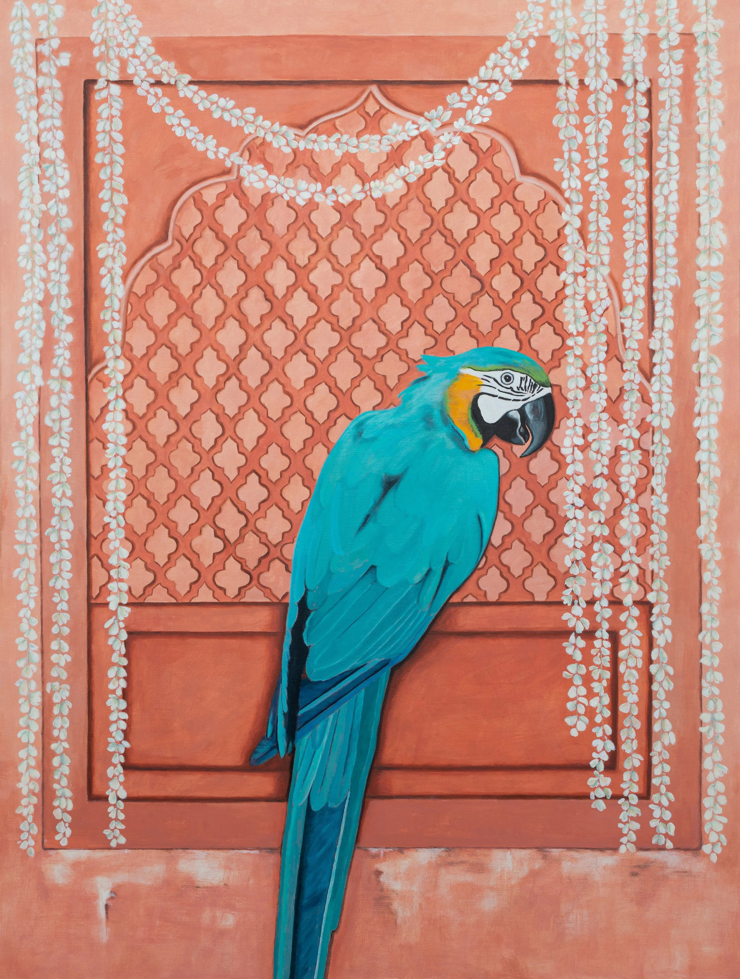 Slide 1 Slide 1 (current slide) Slide 2 Slide 2 (current slide) Green and gold Macaw with Indian Jali.Acrylic on canvas.76 x 102cmSOLD