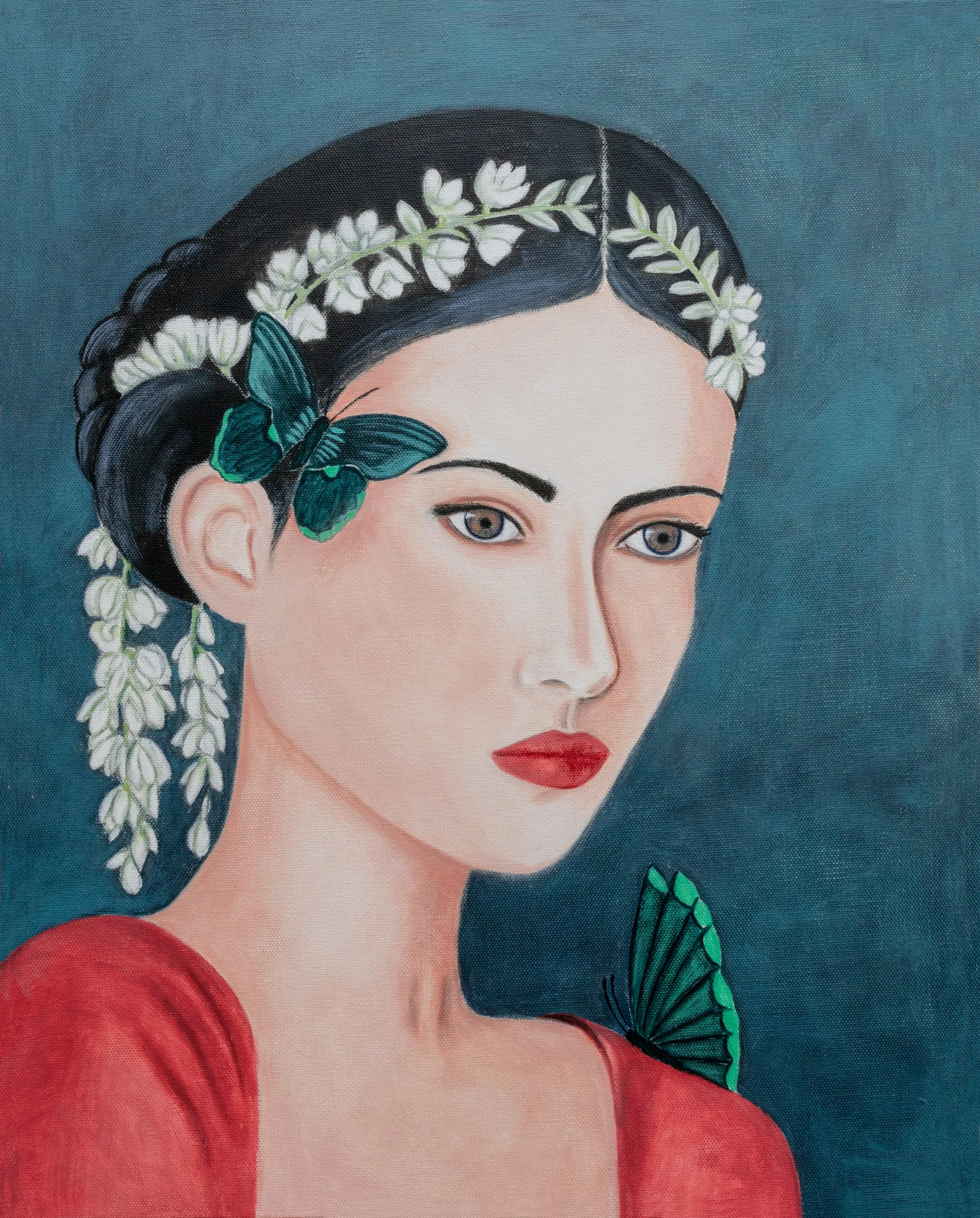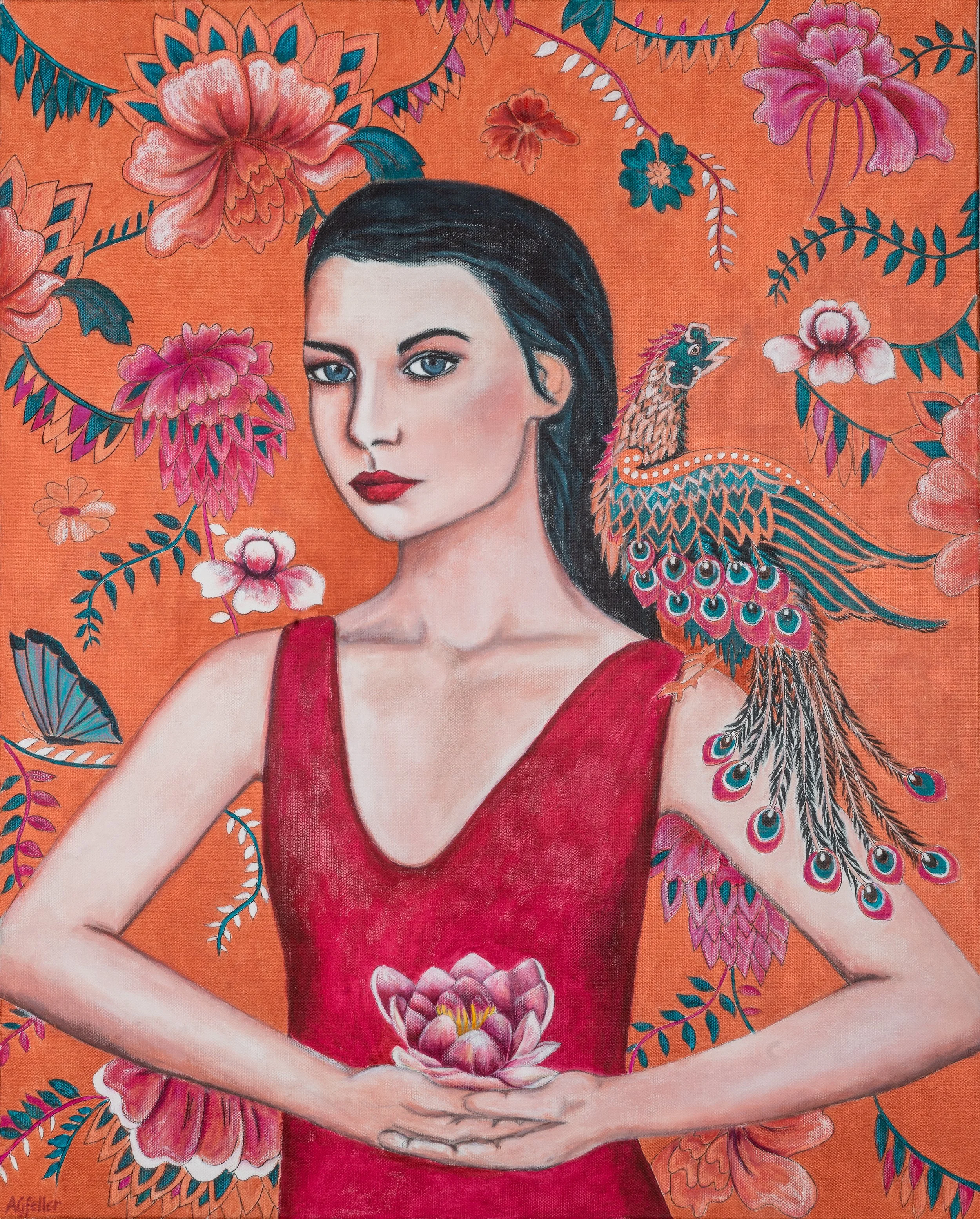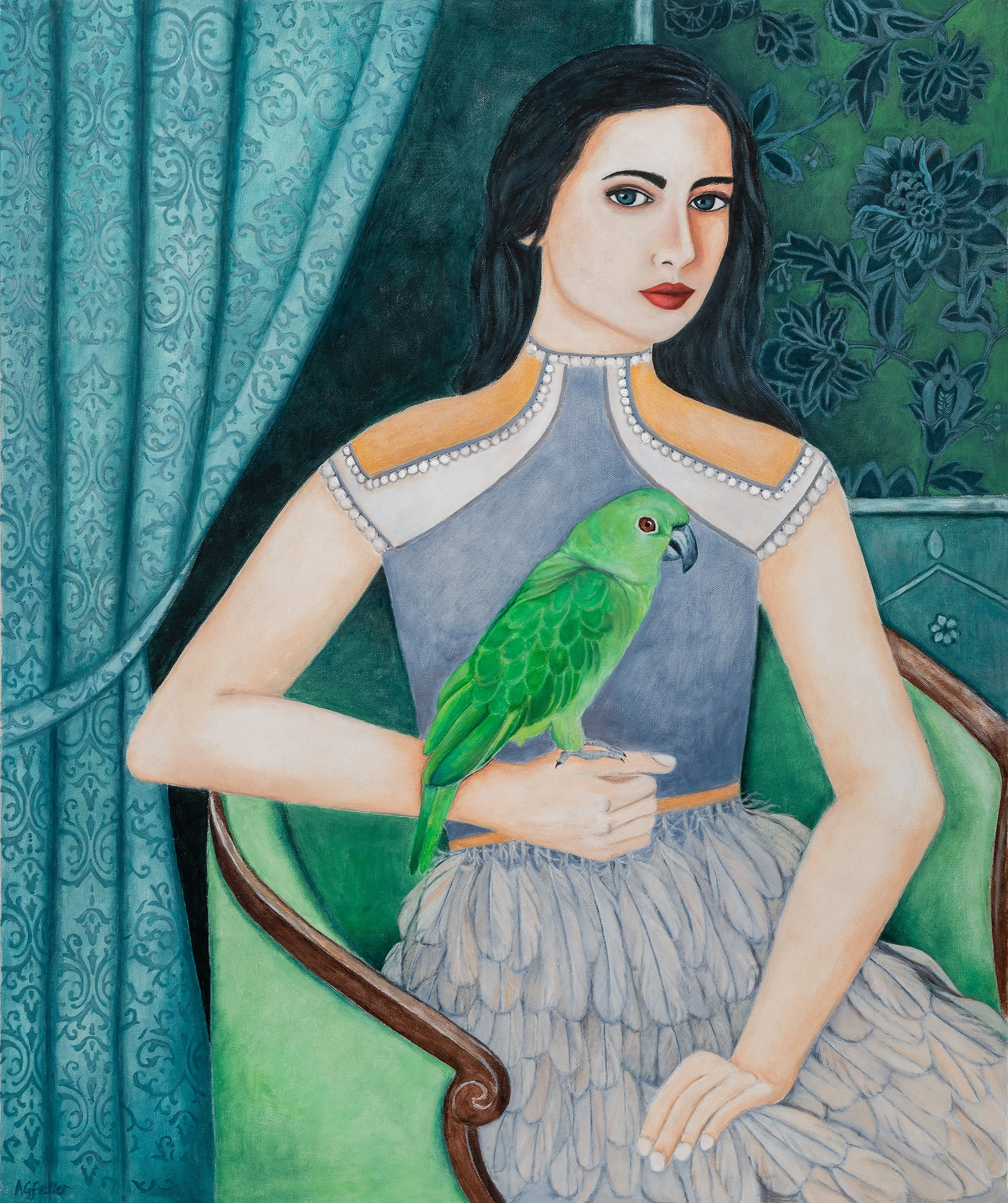 Girl with Green Parrot