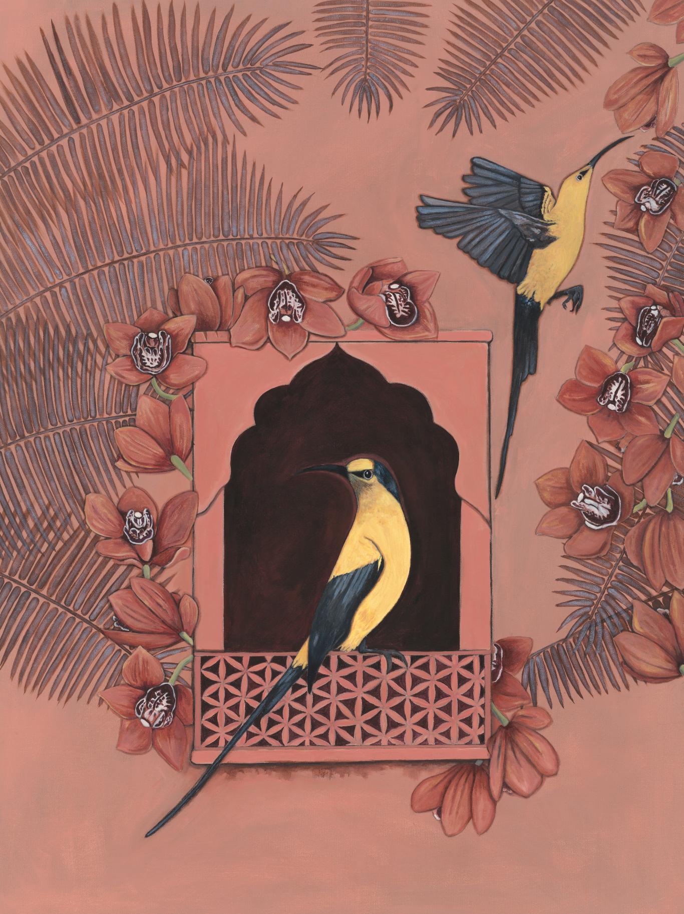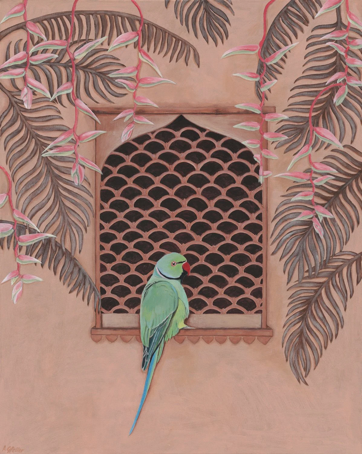 Green and Gold Macaw with Indian Jali